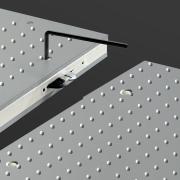 Pannello pavimento costruito esternamente con un lamiera di acciaio zincato ed internamente con una lamiera di acciaio inox AISI 304, bugnato, antisdrucciolo.